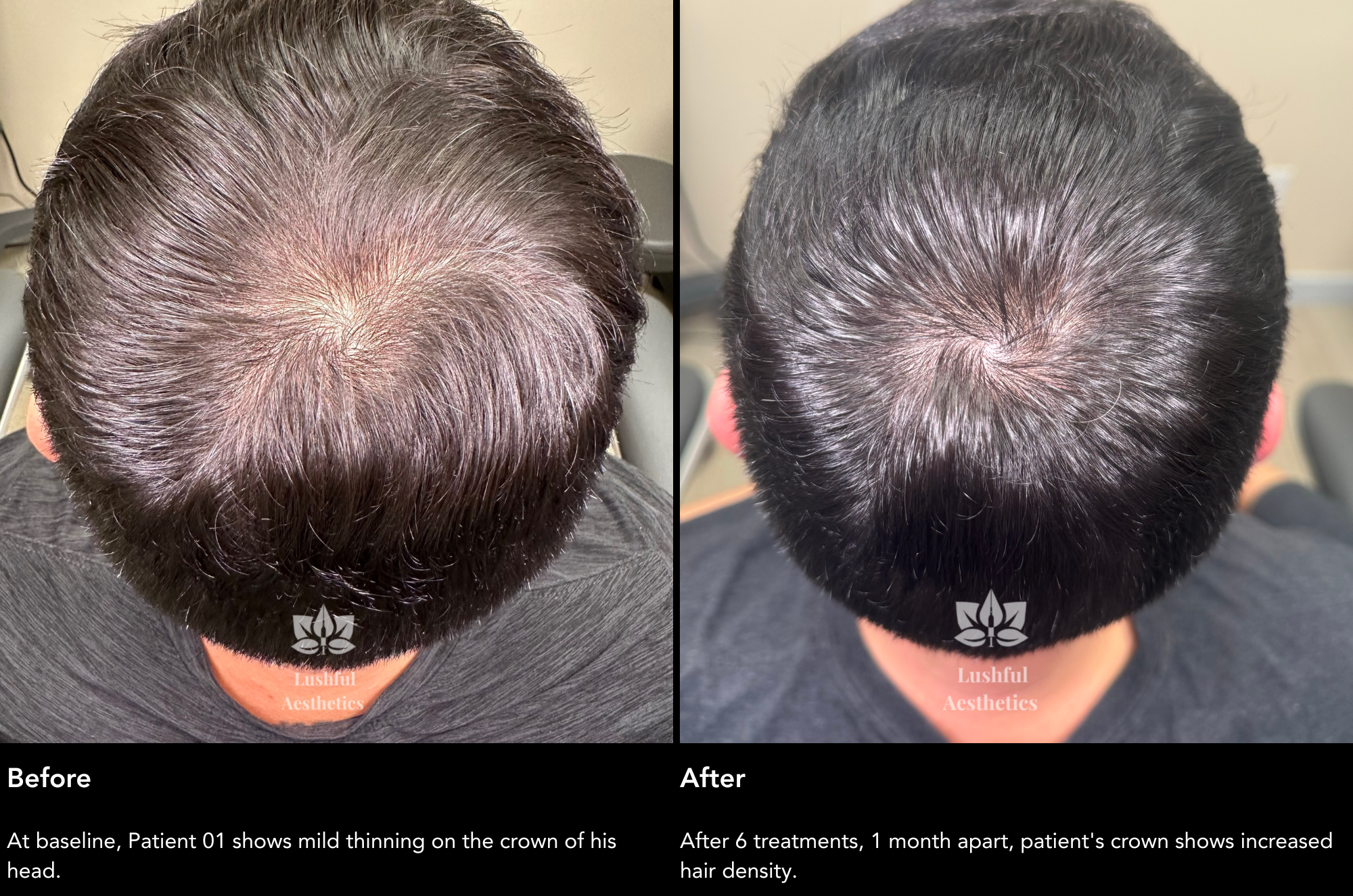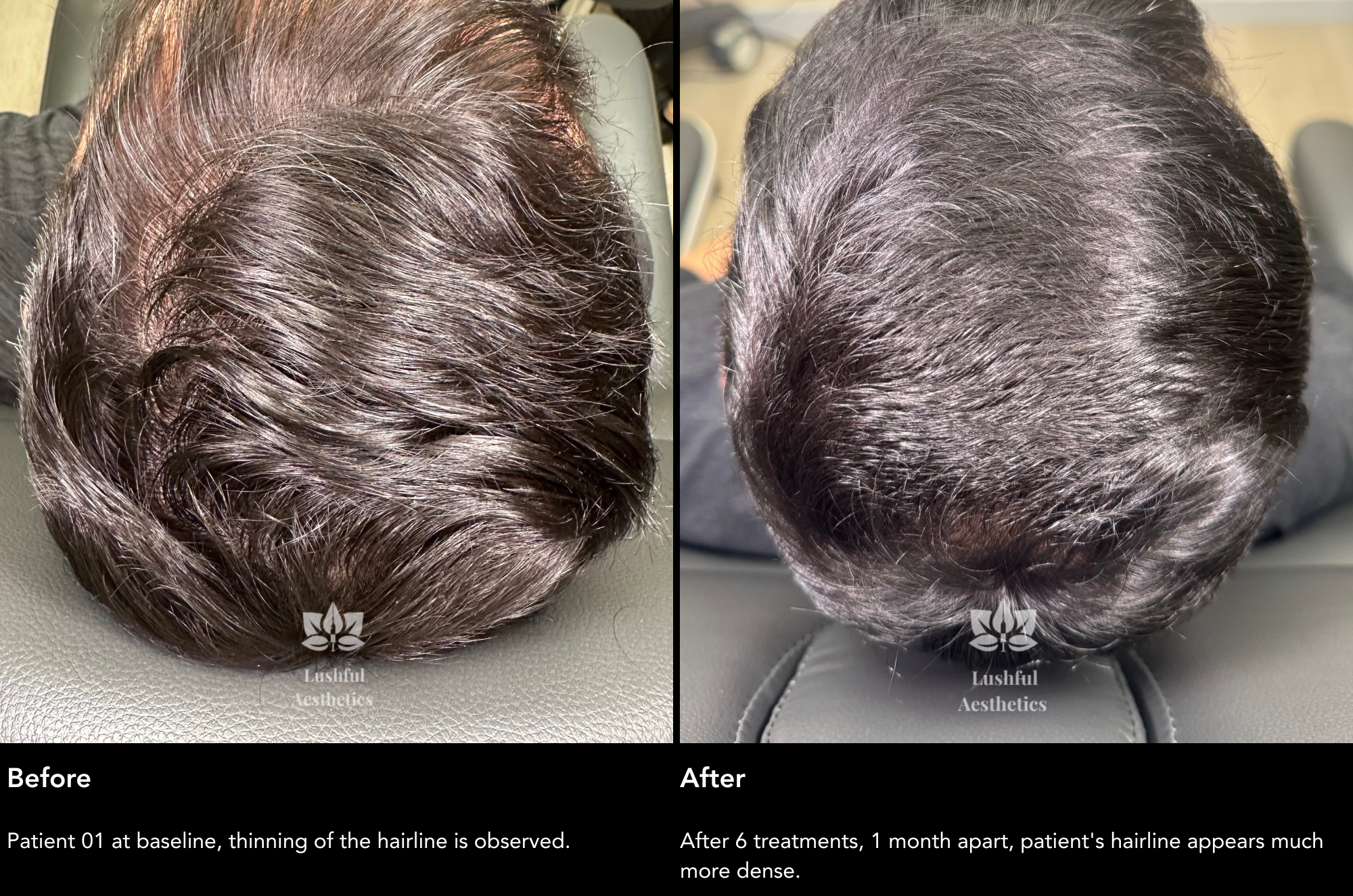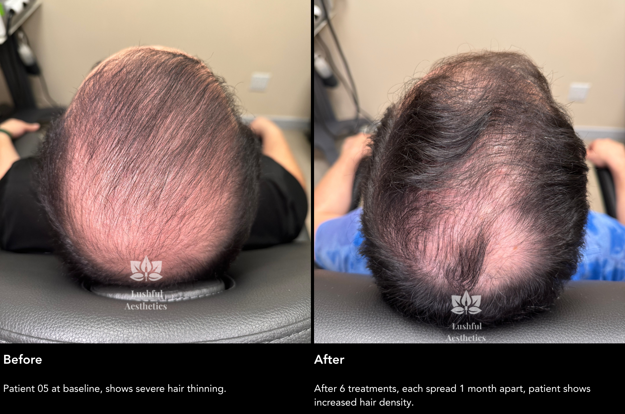 Check out the Alma TED before and after results from our non-invasive hair restoration treatment. This ultrasound-based system delivers a potent hair growth formula deep into the scalp without pain or downtime.